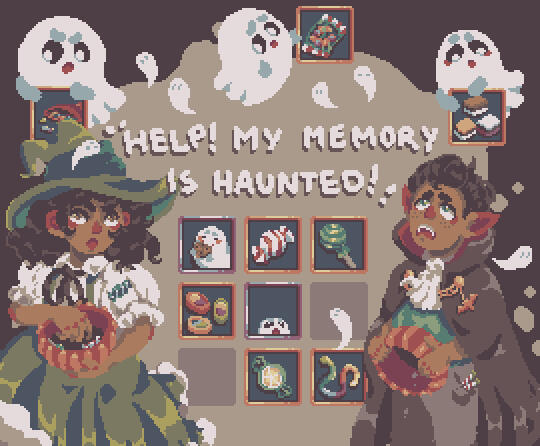 It is time to sort your collection of delicious sweets. But what is that? You seem to have picked up a few ghosts on the way! Quickly, don’t let them steal your hard earned snacks!A quick and simple memory game with a little twist.
